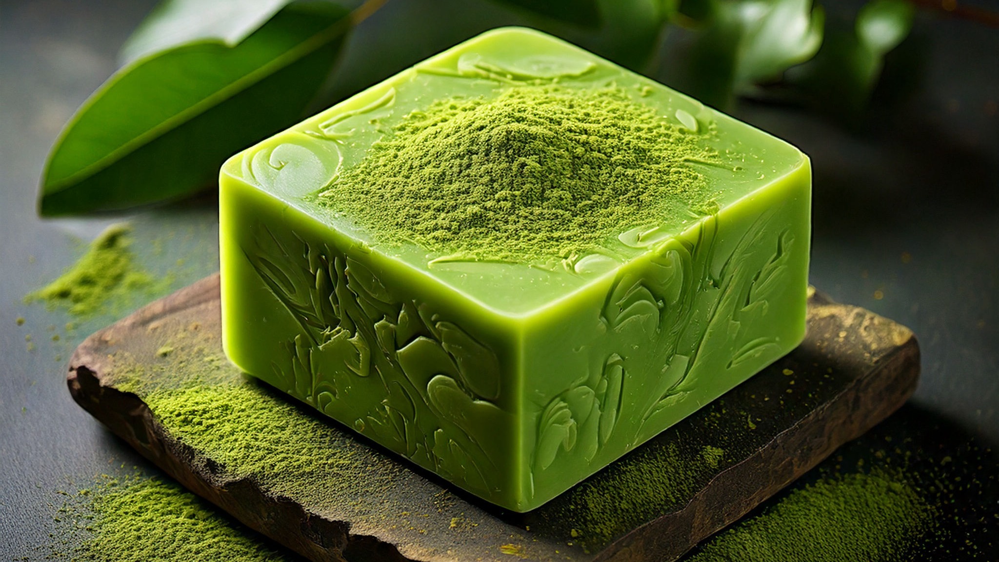 Unsere handgefertigte Matcha-Seife vereint die Kraft des grünen Tees mit pflegenden Pflanzenölen und feuchtigkeitsspendender Sheabutter.